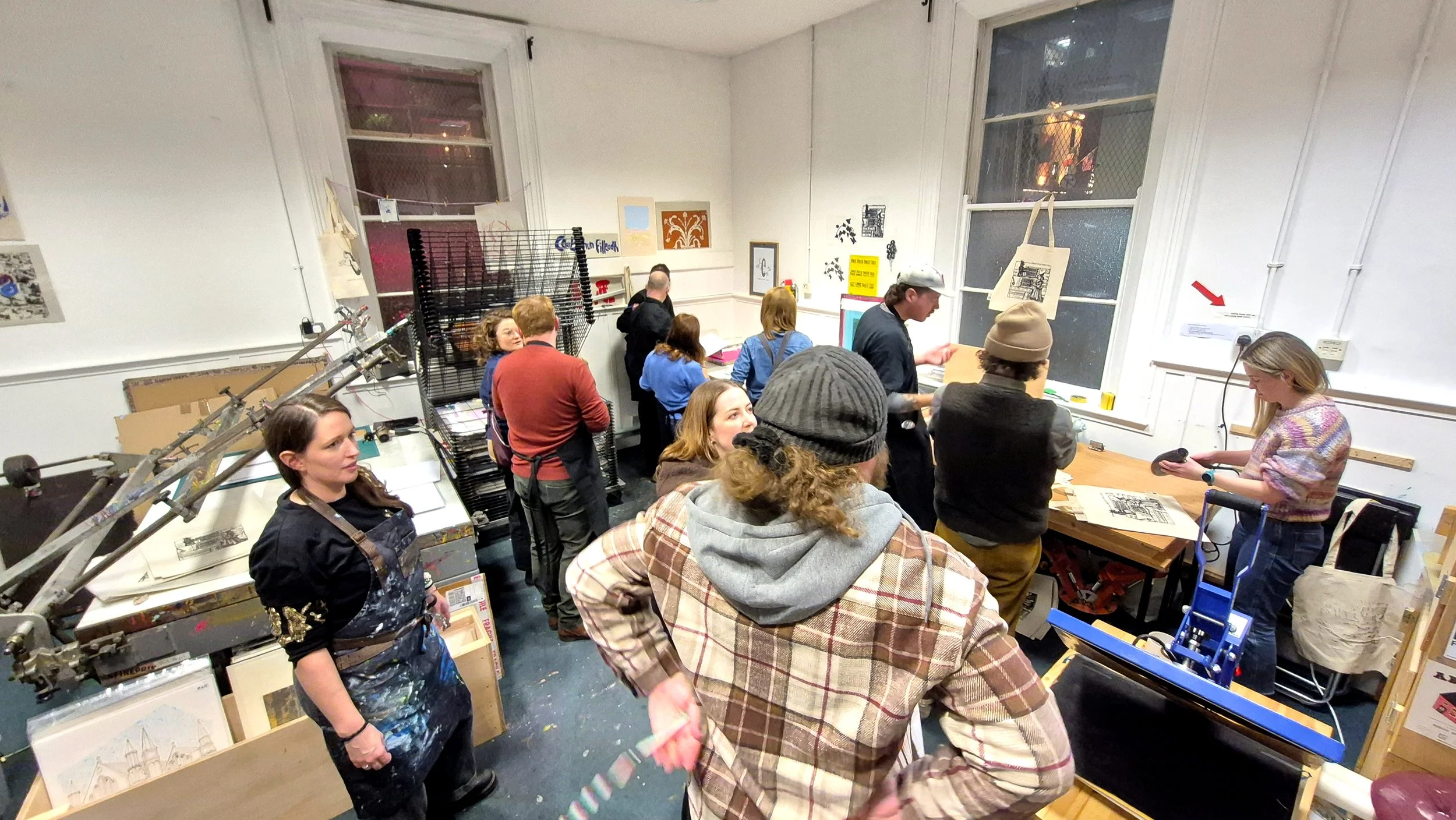 In celebration of Irish Design Week 2025, the printmakers created a mini exhibition of work commissioned by DCCOI responding to this year’s theme of ‘The Links that Link, the Ties that Tie’. These works were each created in studio and exhibited on 21st November 2025. The studio also hosted a very successful open studio and live printmaking event, inviting 50 people to create a limited edition print on paper, and to create a printed tote bag which they cured in studio ready to take home.